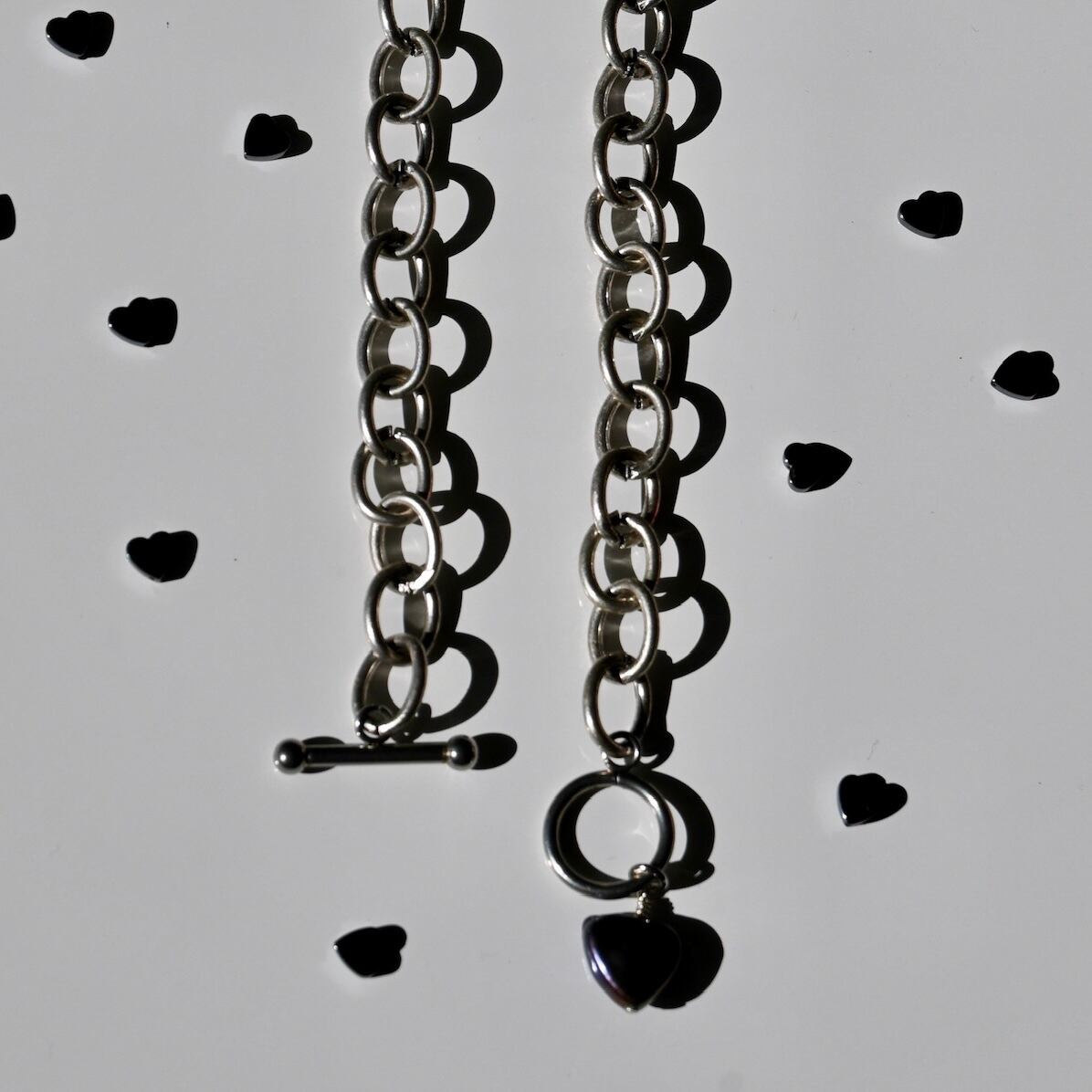 留め具はマンテルを使用し、つける位置を後ろにするとシンプルなチェーンネックレスになり、前につけるとペンダントトップのようにもお使いいただけます。