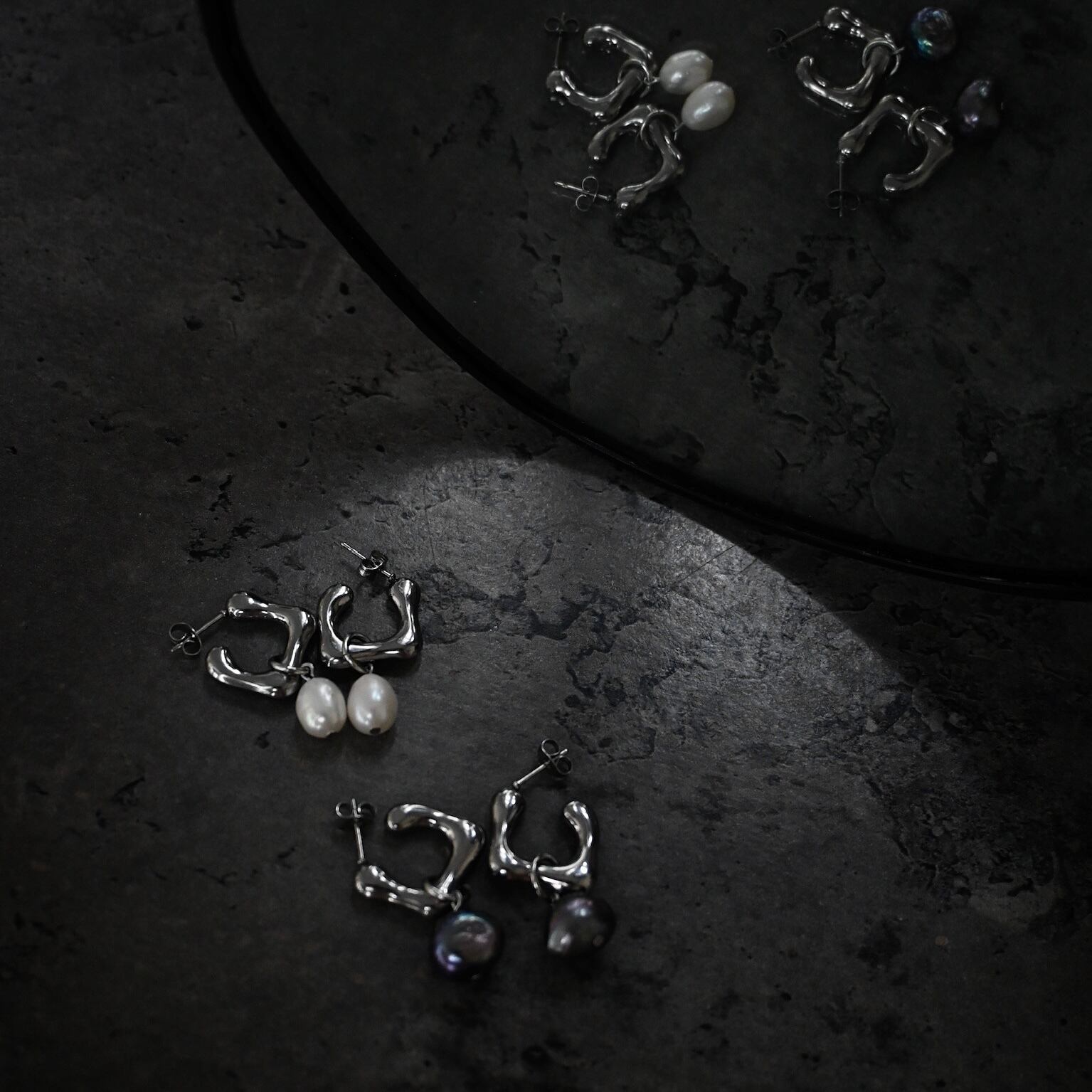 天然淡水パールも黒蝶真珠も、8mmUPの大粒を贅沢に使用。また、同じ形は一つとしてありません。バロックパール特有の個性をお楽しみください。
