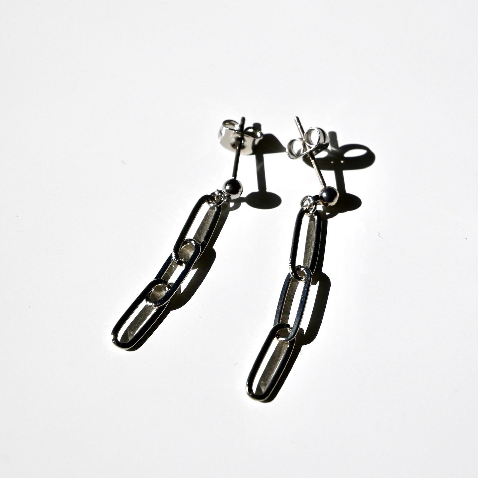 動きに合わせて自由に揺れるチェーンが魅力的な存在感のあるピアス/イヤリングシリーズ。