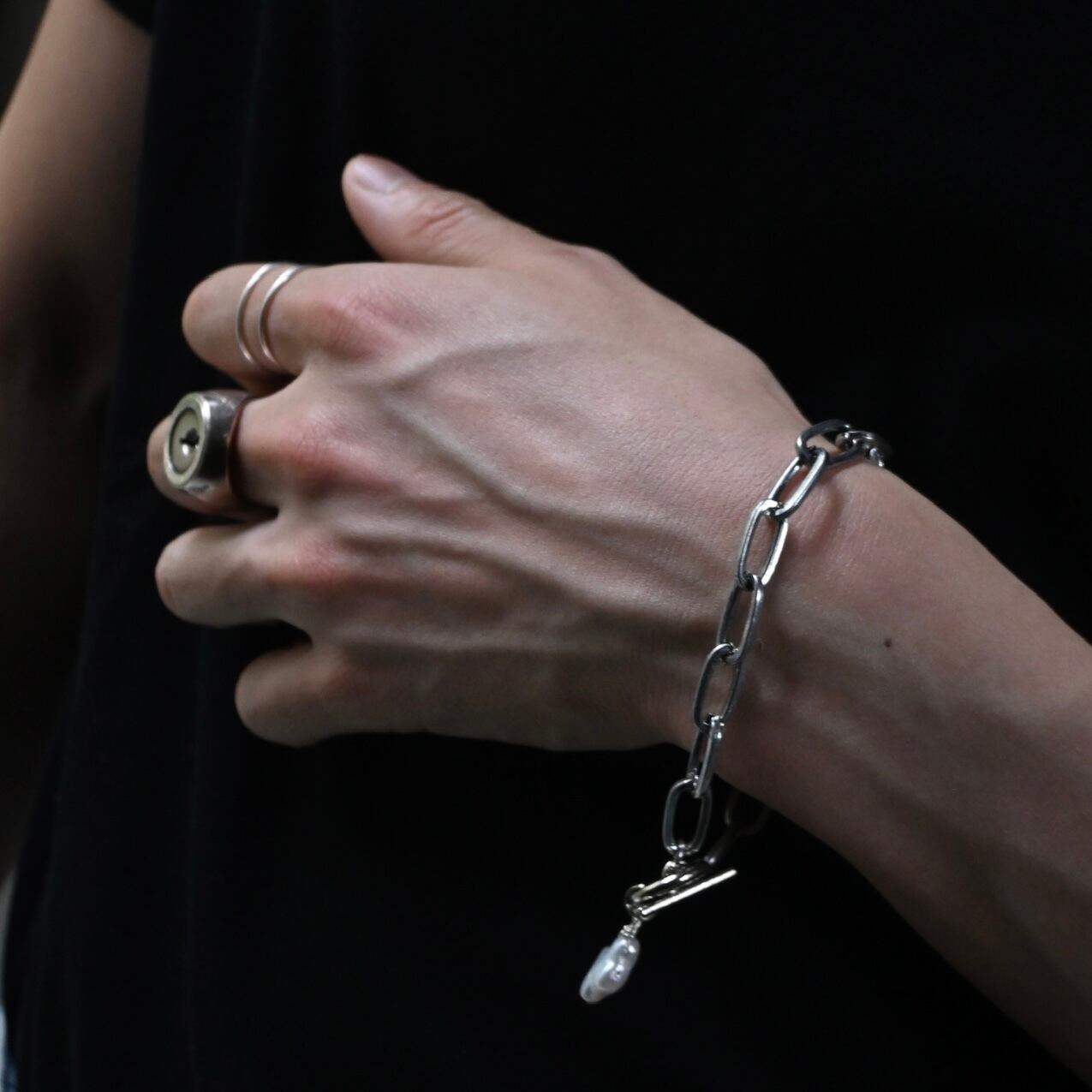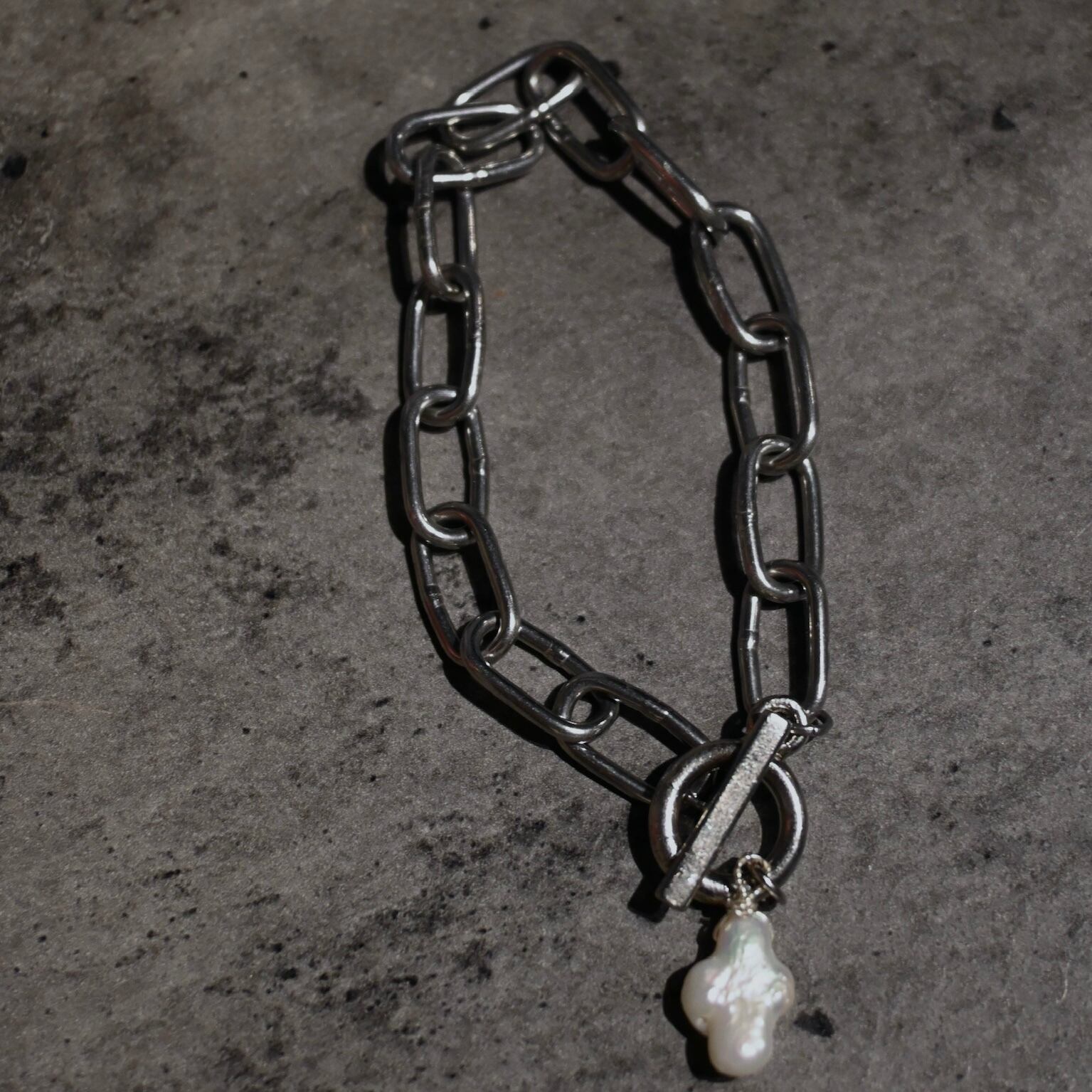 歪んだ十字架パール、日常に溶け込むパールブレス。