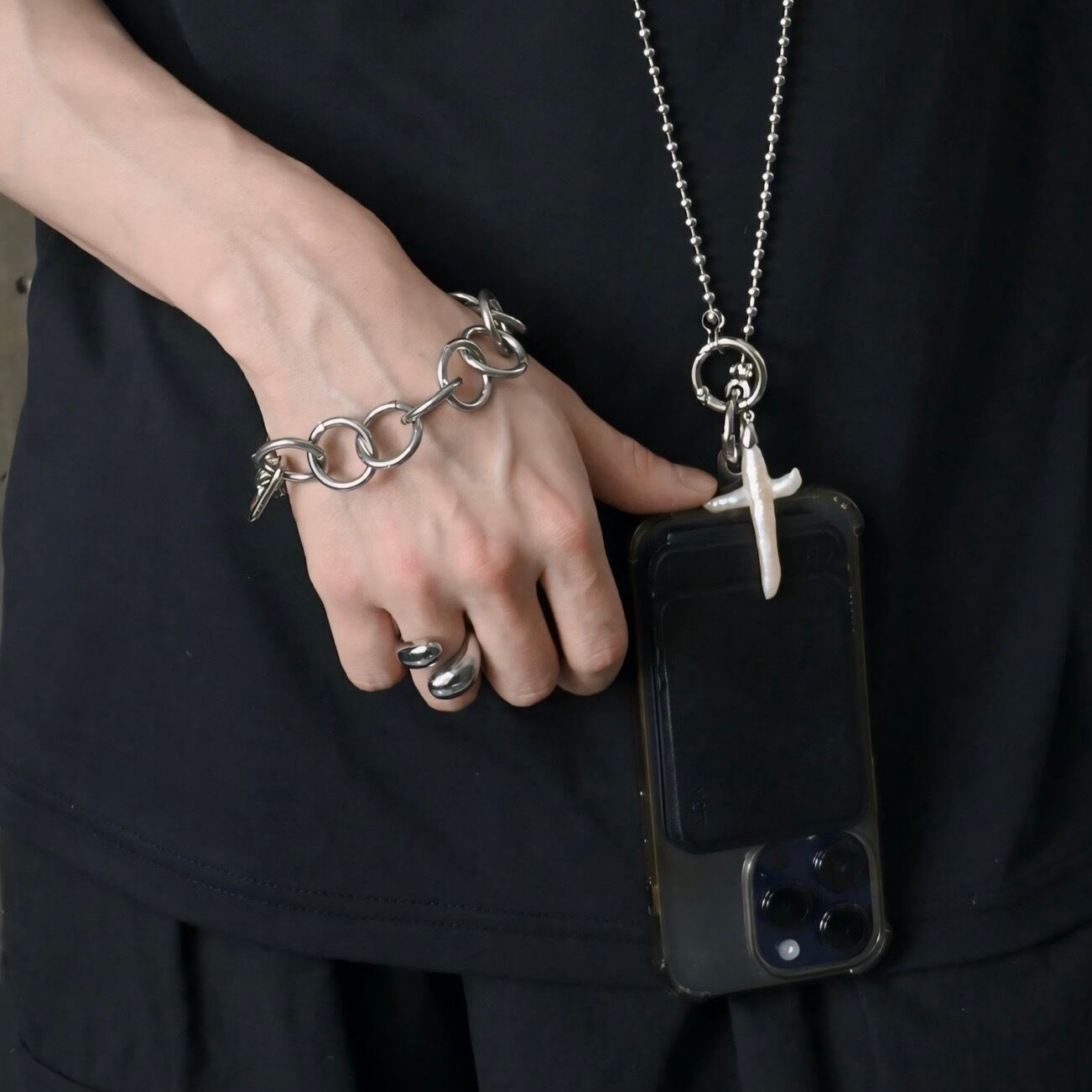 また華奢なブレスレットやリングと組み合わせてコントラストを楽しむなど、他のジュエリーとの重ね付けもオススメです。